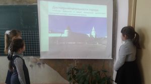 Презентация ярдәмендә балалар шәһәрнең танылган тарихи урыннары белән таныштылар: Казан Кремле - иң танылган һәм иң күп йөри торган архитектура-мәдәни һәйкәл, Кол Шәриф мәчете-Татарстанның төп мәчете, Сөембикә манарасы, Казан Кремленең Благовещение соборы - Иван Грозный заманында төзелгән XVI гасыр архитектура - тарихи һәйкәле, Бауман урамы, Татарстан Республикасы Милли музее, Миллениум күпере һәм башкалар.