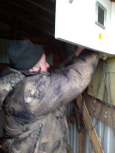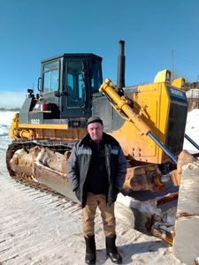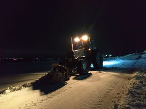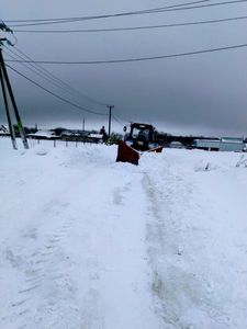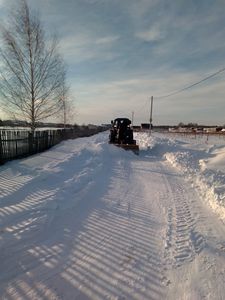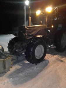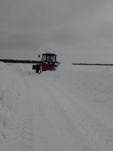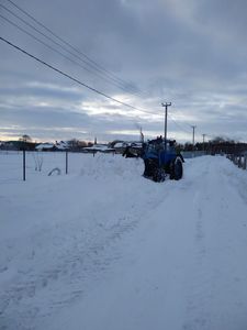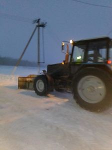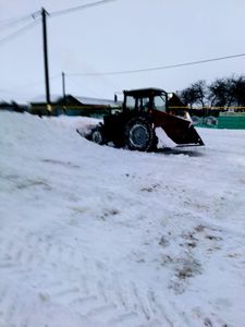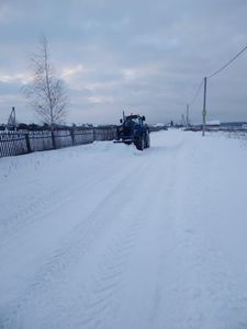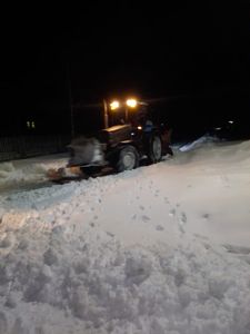Ватан авылында юлларны кардан чистартып, тракторында Галиев Ленар, вакытында чистартып торырга тырыша.