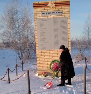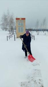Бакча-Сарай авыл клубы мөдире Асия Файзулова һәйкәл тирәсендәге карны көрәде.Чөнки иртәгә Хәбәрсез югалган солдат көненә багышланган митинг уздыру планлаштырылган.