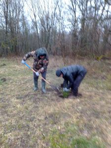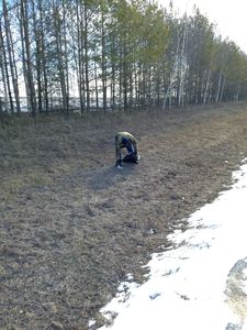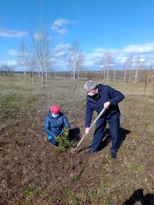 Алдан язылганча Вахитлылар урман утыртмаларын кулдан утырту юлы белән булдыралар, кар астыннан 2019 елда утыртылган нарат үсентеләре күренә.