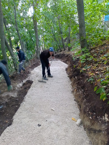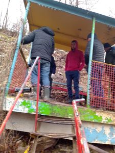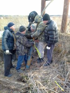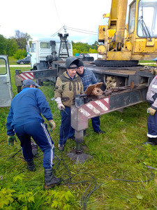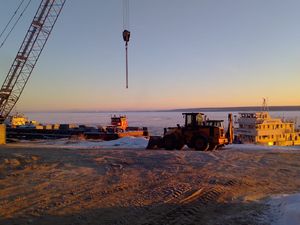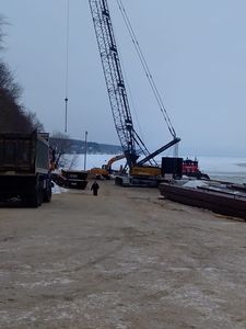 Матюшино карьеры базасында 80 күпер төзү отряды эшли, Идел аша булачак күпер өчен материаллар әзерләч эшләре.