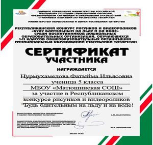 Матюшино урта мәктәбенең 5 нче сыйныф укучысы Нурмөхәммәдова Фатыйма Татарстан Республикасы Гадәттән тыш хәлләр министрлыгы ноябрь аенда үткәргән "Бозда һәм суда сак бул!" дигән рәсем һәм видеороликлар республика бәйгесендә җиңүче булды. Конкурс су объектларында балалар белән бәйле һәлакәтләрне кисәтү максатыннан үткәрелде.
