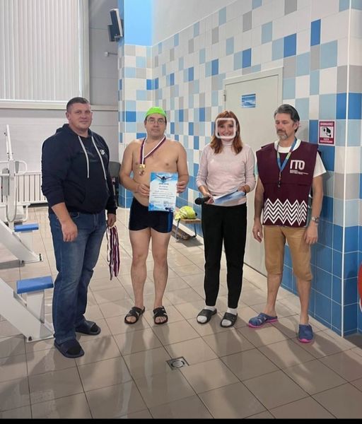 Судьялар протоколларына ярашлы, Сергей Витальевич 50 метрны 44 секундта йөзү белән мактаулы 3 урынны ала һәм алтын билгегә ГТО ВФСКНЫҢ 12 баскычы нормативын үти.