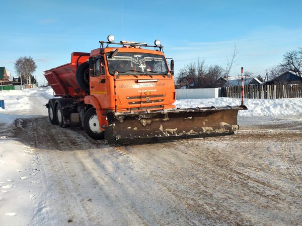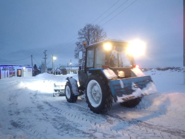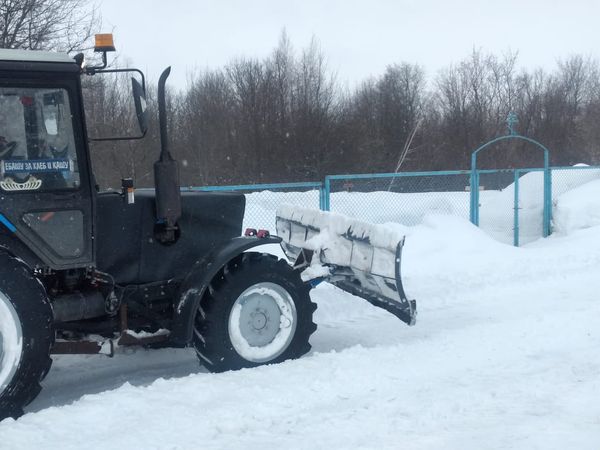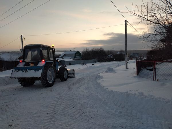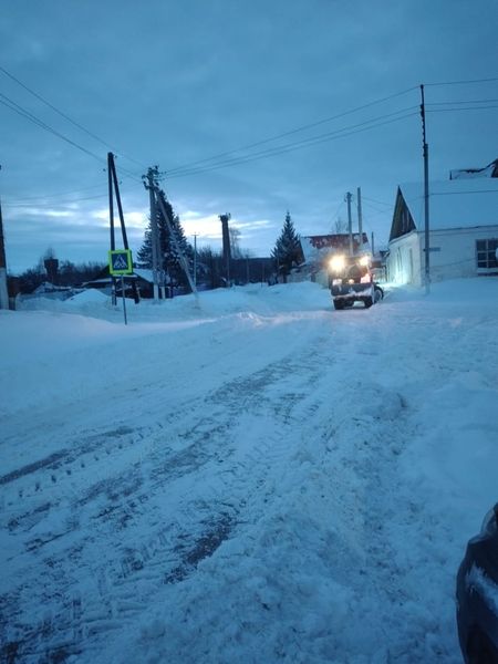 Кар яуганнан соң иртән авыл урамнарына урып-җыю техникасы чыкты.