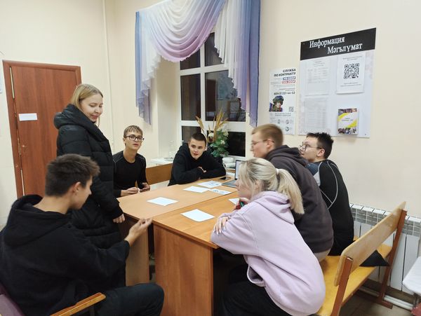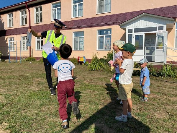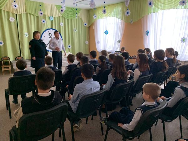 Полиция хезмәткәре яшүсмерләргә урамда һәм җәмәгать урыннарында үз-үзләрен тоту кагыйдәләрен искә төшерде, җинаять корбаны булмау турында сөйләде һәм закон бозулар өчен җаваплылыкка игътибар итте.