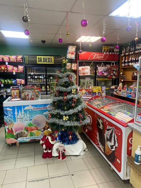 Яңа ел бәйрәменә әзер! Кече бизнес үзенең сәүдә нокталарын Яңа елга гирляндалар һәм инсталляцияләр белән бизәгән.Биҙәлгән кибетләр авылга үзенчәлекле атмосфера бирә. Иң яхшы Яңа ел бизәлеше итеп Л.Н. Никитинаның ИП азык - төлек кибете сайланган.