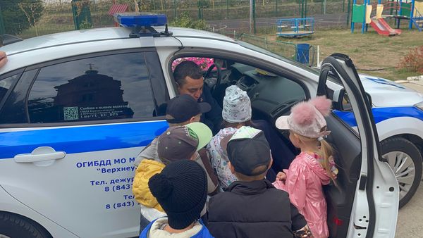 Балалар полиция хезмәткәрен игътибар белән тыңладылар. Чыгыштан соң теләгән һәркем үзләрен кызыксындырган сорауларга җавап алды.