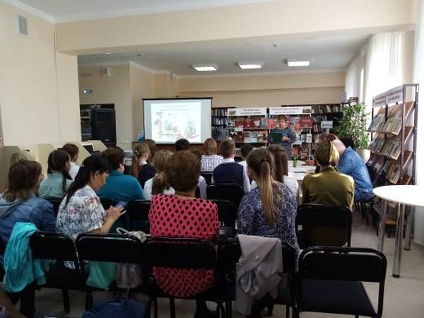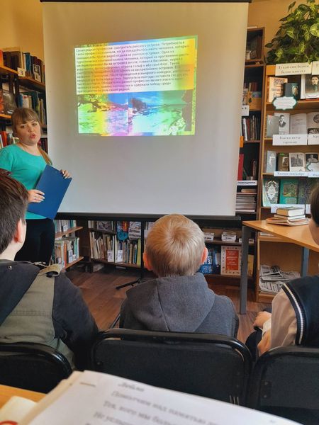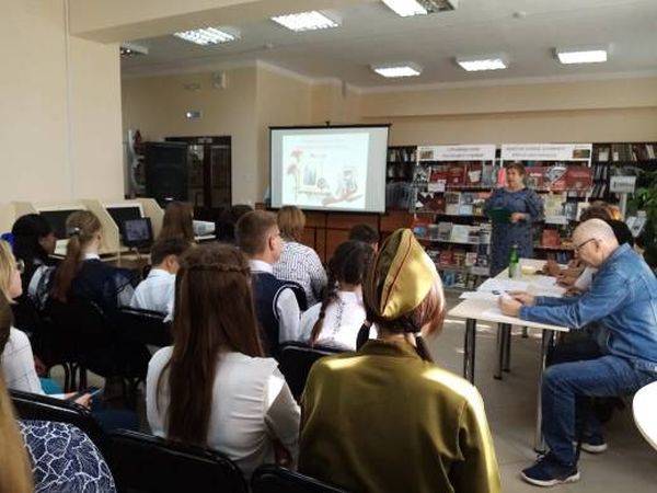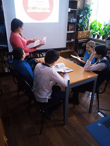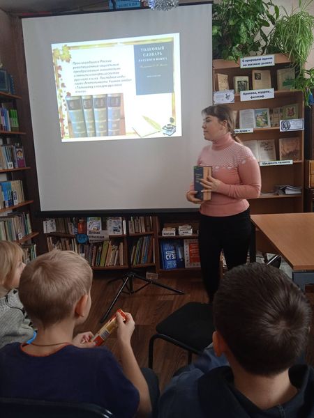 Китапханәче Елена Седова яшь укучыларга Ушаковның биографиясен һәм эшчәнлеген сөйләде һәм ул төзегән сүзлек белән таныштырды.