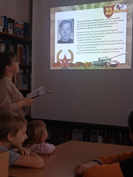 22 февраль көнне Мәмәтхуҗа авылы китапханәсендә «Геройлар белән диалоглар» Бөтенроссия проекты кысаларында Ватанны саклаучылар көненә «Ватанга хезмәт итәргә изге эш» дигән патриотик сәгать узды. Чарада китапханәче Елена Седова укучыларны электрон презентация ярдәмендә Советлар Союзы Герое Зиннуров Нәбиулла Шәфиг улы һәм Әфганчы Казаков Анатолий Евгеньевич һәм Саттаров Госман Нәбиулла улы батырлыклары белән таныштырды. Елена шулай ук хәзерге геройлар, Украинадагы махсус хәрби операциядә катнашучылар турында да сөйләде. Укучылар Татарстаннан киткән катнашучыларның батырлыклары белән таныштылар.