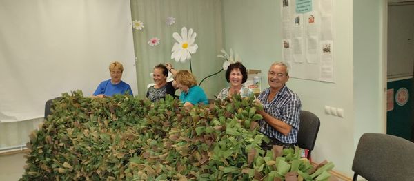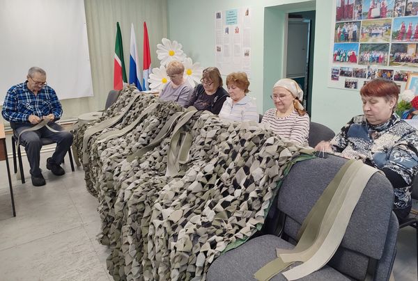 Уртак өстәл артына җыелганнар иҗат процессына мавыгып чума. Маскировка челтәренең һәр төене-материал кисәге генә түгел,ә туган җир һәм аны бу катлаулы вакытта саклаучы кешеләр турында Бердәмлек һәм кайгырту символы.