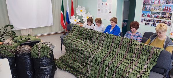 Соболевское авылы мәдәният йортында Бердәмлек һәм иҗат атмосферасы хөкем сөрә. Монда махсус хәрби операция зонасына җибәрү өчен маскировка челтәрләре үрү һәм үләннәр белән хуш исле чәй тутыру буенча Игелекле эш башланды.