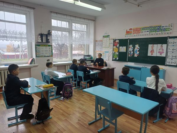 Дәрестә Ватанга хезмәт итү мәсьәләләре буенча фикер алышынды. Укучылар Бөек Ватан сугышының тарихи вакыйгаларына чумдылар, геройларның батырлыклары турында сөйләделәр. Солдатов Владимир Алексеевич укучыларга сугыш елларында Әфганстанда хезмәт итүе турында сөйләде. Авыл җирлеге башлыгы дәрестә ОКСВ Ввода Әфганстанга 45 ел истәлекле медален тапшырды.